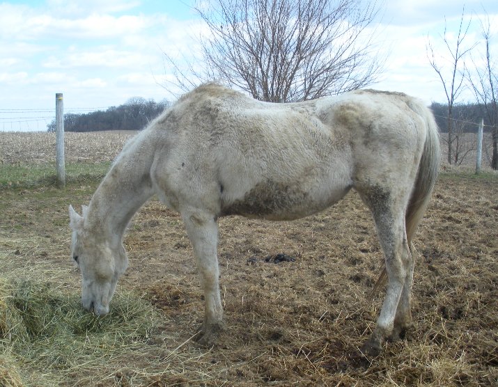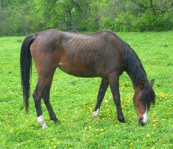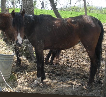 5-4-09!! They are on full pasture now with hay 24/7 and are steadily improving. Sira looks GREAT...barely any ribs showing!